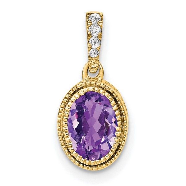 14k Oval Amethyst and Diamond Pendant