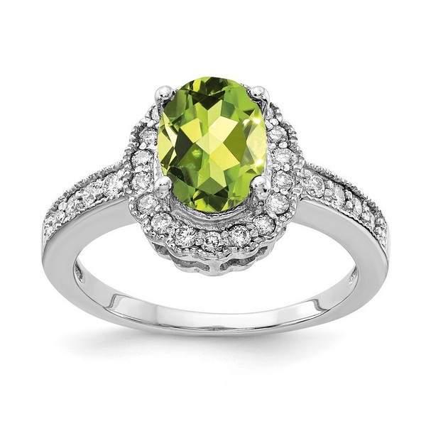 14k White Gold 8x6mm Oval Peridot Checker AA Diamond ring