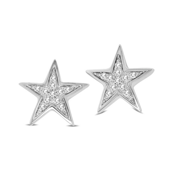 These eye-catching Earrings are available in 10K White Gold. There are 22 round diamonds with a total carat weight of 1/20 ct set in a prong setting.