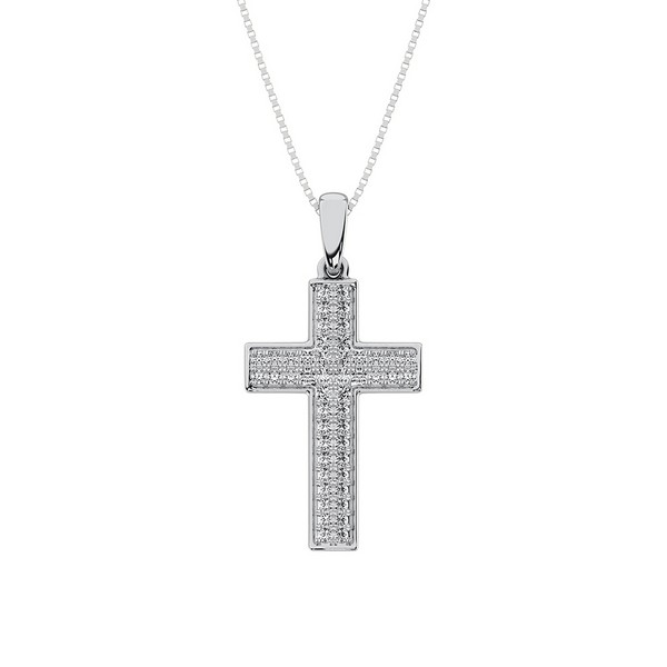 10K White Gold 1/4 Ct.Tw. Diamond Pave Set Cross Pendant