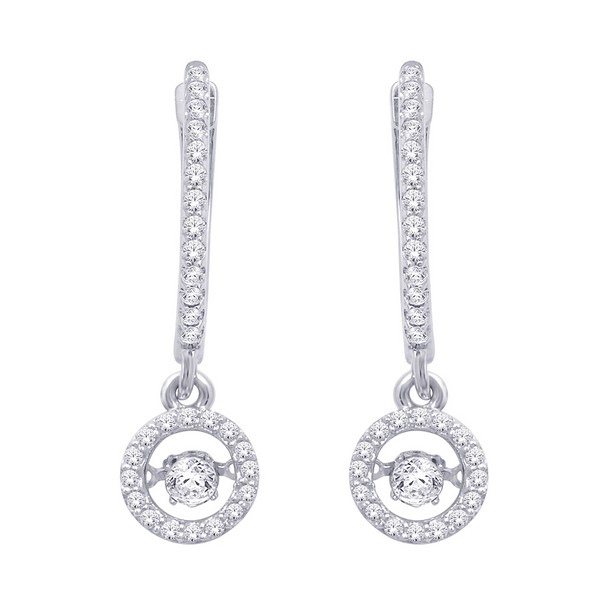 These eye-catching Earrings are available in 10K White Gold. There are 60 round diamonds with a total carat weight of 2/5 ct set in a prong setting.