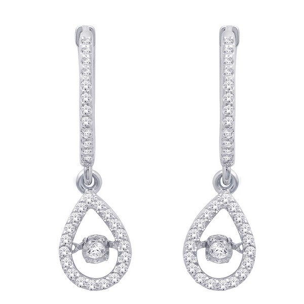 10K White Gold 2/5 Ct.Tw.Moving Diamond Fashion Earrings. The Center diamond glistens in a unique setting that moves with every beat of her heart and every turn of her head!!