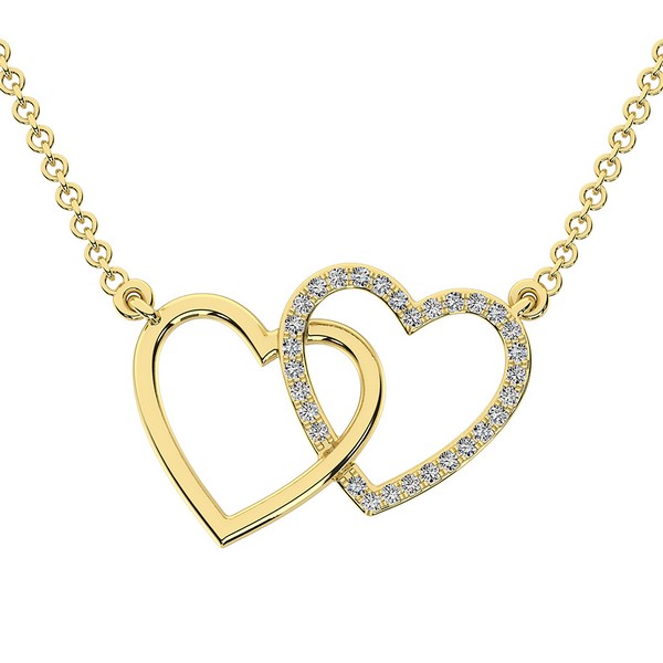 10K Yellow Gold 1/10 Ct.Tw. Diamond Interlinked Heart Necklace