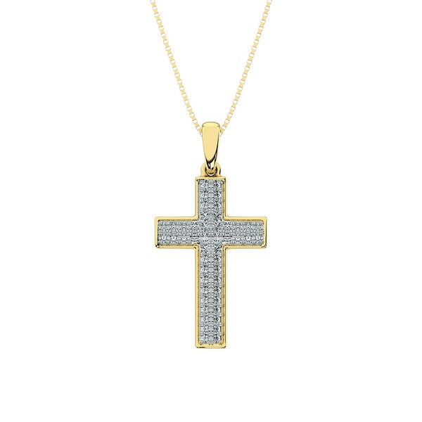 10K Yellow Gold 1/4 Ct.Tw. Diamond Pave Set Cross Pendant