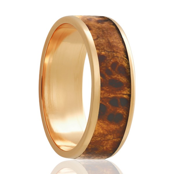 Yellow gold with burl wood inlay