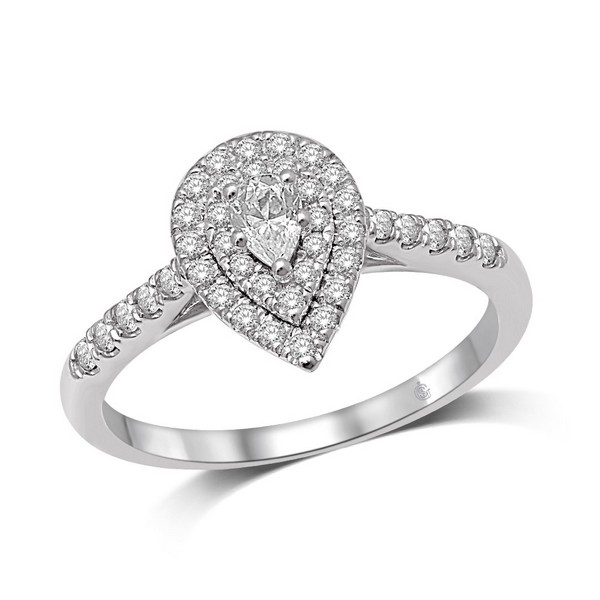 Elegant Diamond Straight Shank Double Halo Engagement Ring Fashioned In 14K White Gold And Showcases Sparkling 1/2 Ctw Diamond.