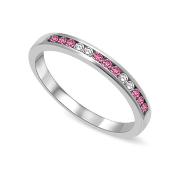14K White Gold Machine Band Set with 9 round cut 1/5 Ctw Pink Sapphires and 4 diamonds in channel setting.