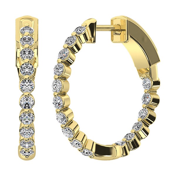 14K Yellow Gold 1 5/8 Ct.Tw. Diamond Round Set Hoop Earrings