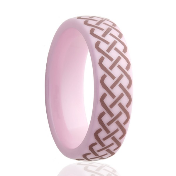 Pink ceramic ring with laser engraved pattern