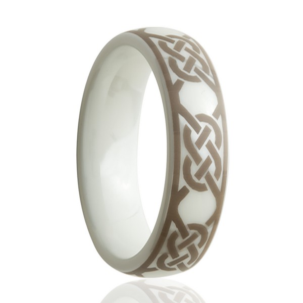 White ceramic ring with laser engraved pattern
