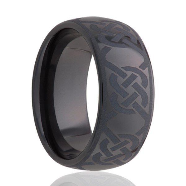 Black ceramic ring with laser engraved pattern