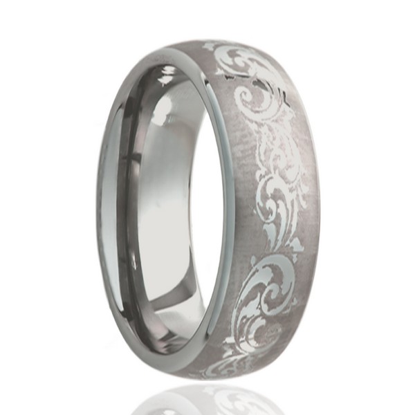 Cobalt ring with a laser engraved pattern