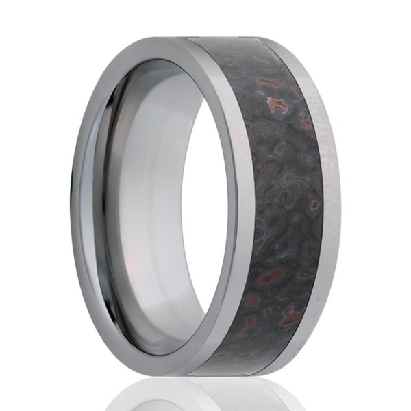Cobalt ring with a dinosaur bone inlay