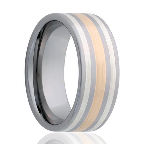 Cobalt ring with silver and yellow gold inlays