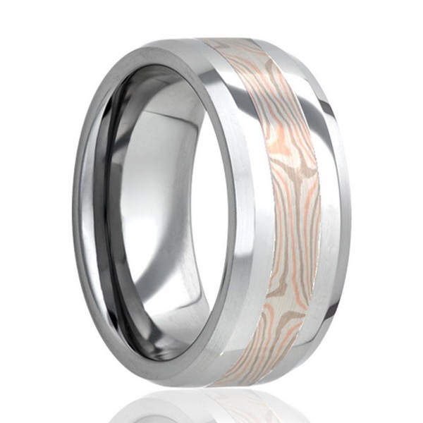 Cobalt ring with white gold, rose gold and silver mokume gane inlay