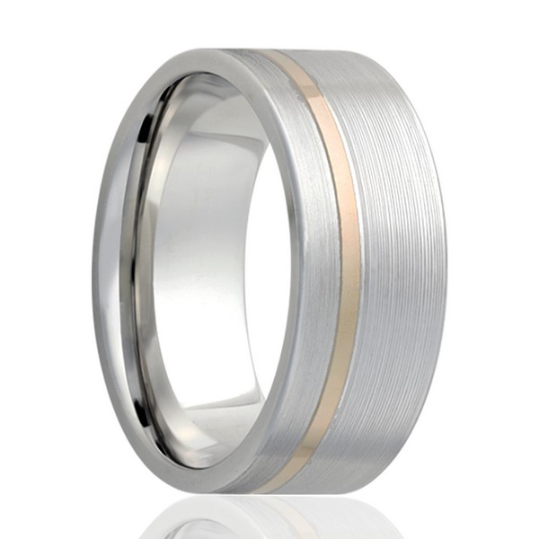 Cobalt ring with machine finish and yellow gold inlay