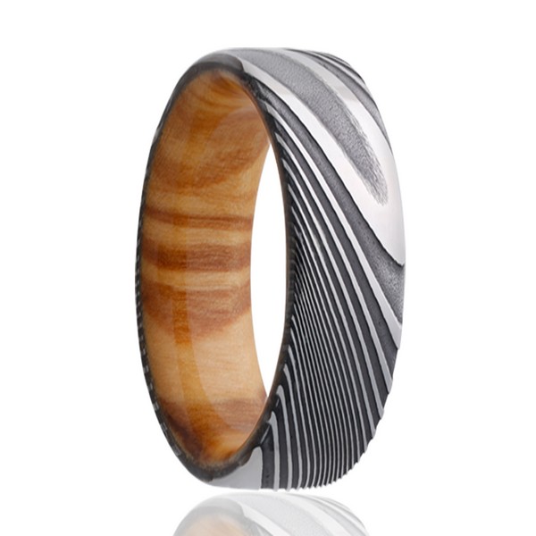 Damascus ring with olive wood
