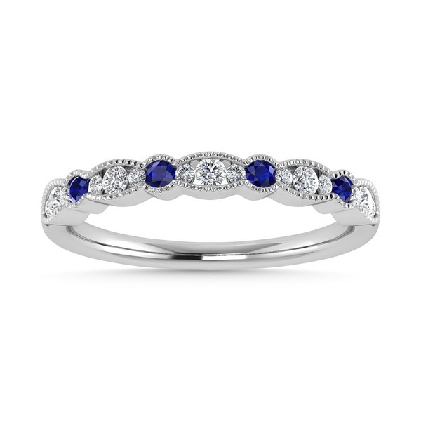 Diamond 1/4 Ct.Tw. And Blue Sapphire Band in 14K White Gold