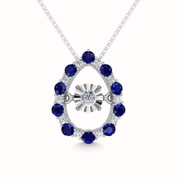 Diamond 1/4 Ct.Tw. And Blue Sapphire Fashion Pendant in 10K White Gold
