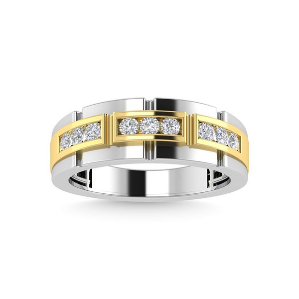 Diamond 1/4 Ct.Tw.Mens Wedding Band in 14K Two Tone Gold