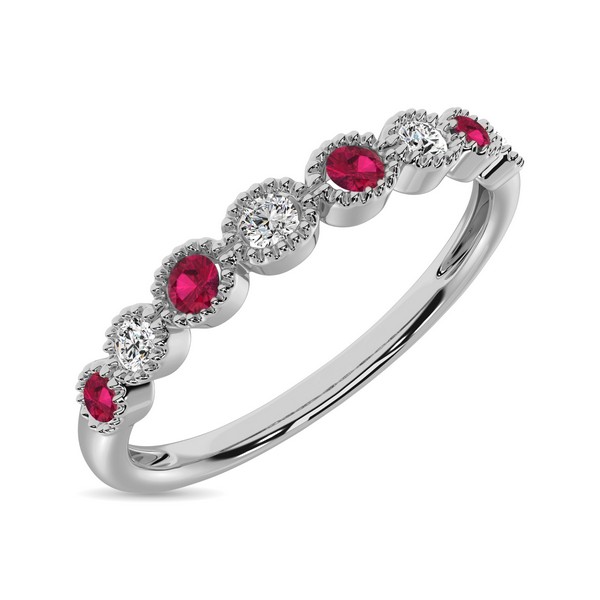 Diamond 1/6 Ct.Tw. And Alternate Ruby Stack Band in 10K White Gold ( 4 Diamond and 4 Ruby )