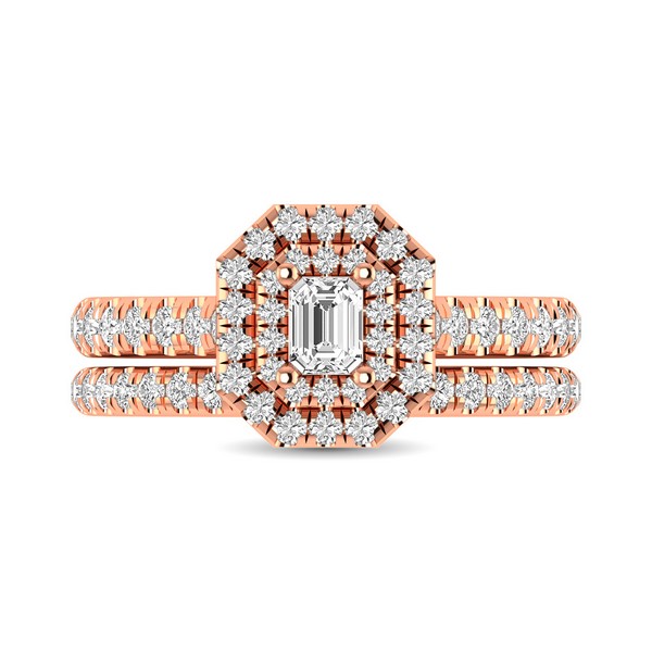 This classic shank Double Halo Bridal Ring set with Emerald Cut diamond 1/4 ct center. Total diamond weight 1 ct tw.