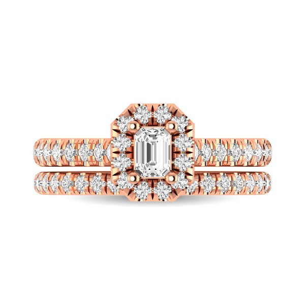 This classic shank single Halo Bridal Ring set with Emerald Cut diamond 1/3 ct center. Total diamond weight 1 ct tw.