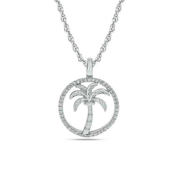 Diamond Sea Of life Palm Tree Pendant 1/8 ct tw in Sterling Silver