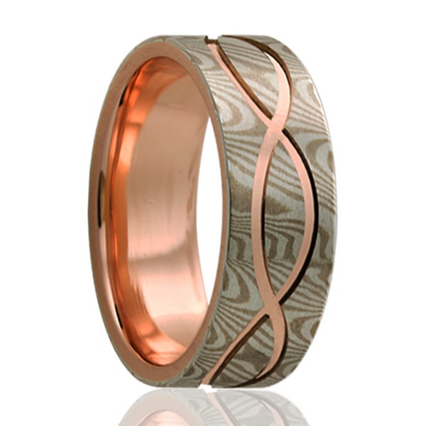 Rose gold ring with sterling silver and white gold mokume gane overlay with infiniy pattern