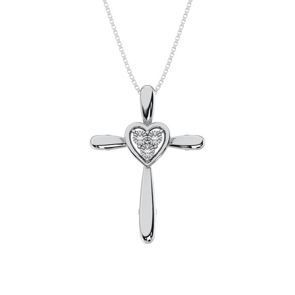 Sterling Silver 1/50 Ct.Tw. Diamond Cross with Heart Necklace