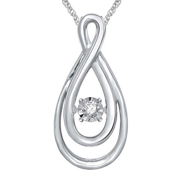 This Delightful Pendant Is Fashioned In Sterling Silver And Features Dazzling Diamond accents. The Center diamond glistens in a unique setting that moves with every beat of her heart.