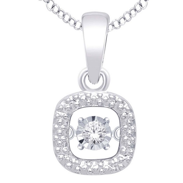 This Delightful Pendant Is Fashioned In Sterling Silver And Features Dazzling Diamond Accents. On A Special Day, Treat The One You Love To A Sweet Surprise With This Beautiful Pendant. The Center diamond glistens in a unique setting that moves with every beat of her heart.