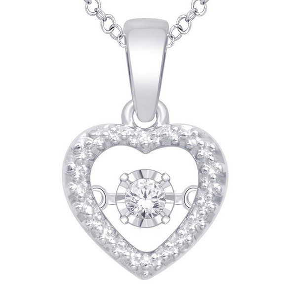 This Delightful Pendant Is Fashioned In Sterling Silver And Features Dazzling Diamond Accents. On A Special Day, Treat The One You Love To A Sweet Surprise With This Beautiful Pendant. The Center diamond glistens in a unique setting that moves with every beat of her heart.