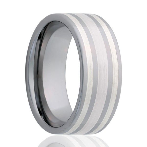 Tungsten ring with silver inlays