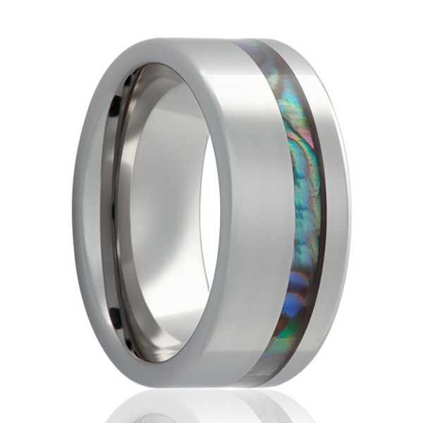 Tungsten ring with an abalone inlay