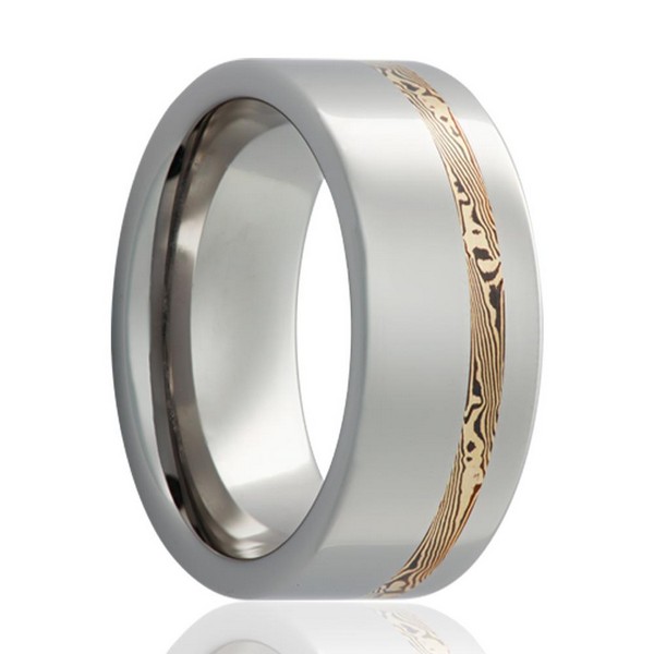 Tungsten ring with a yellow gold and shakudo mokume gane inlay