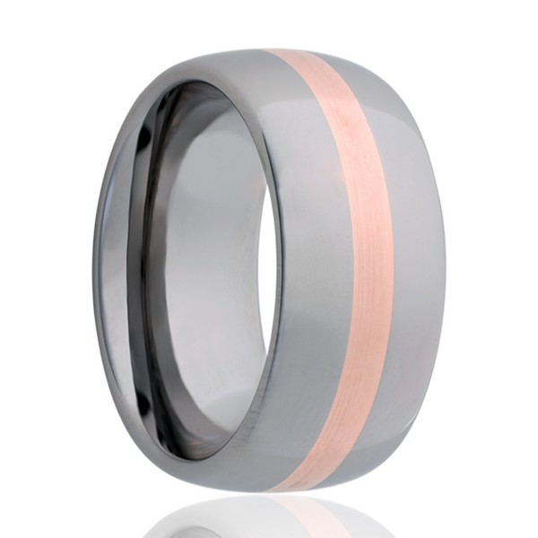 Tungsten ring with rose gold inlay