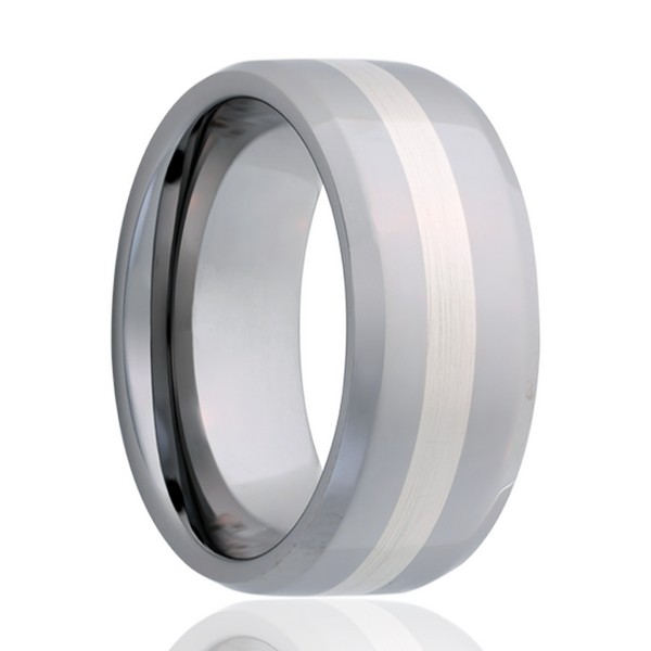 Tungsten ring with platinum inlay