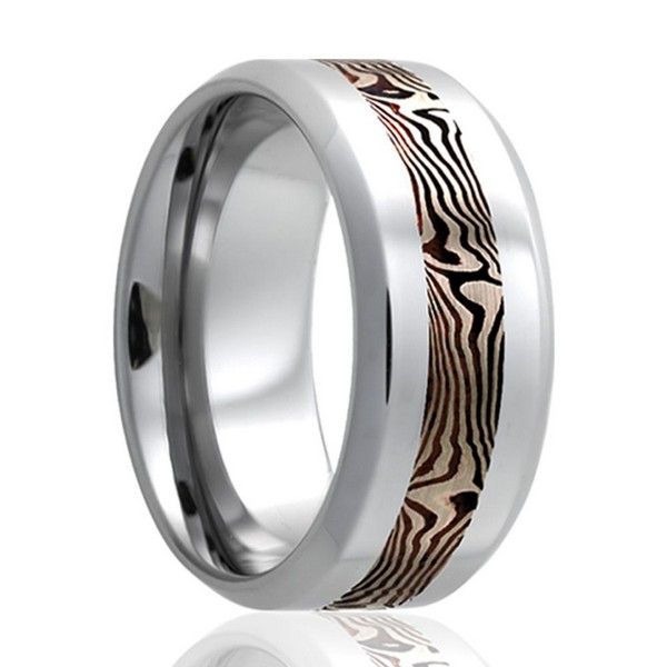 Tungsten ring with a white gold and shakudo mokume gane inlay