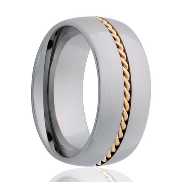 Tungsten ring with yellow gold inlay