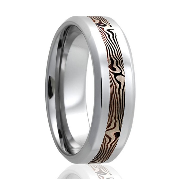Tungsten ring with a white gold and shakudo mokume gane inlay