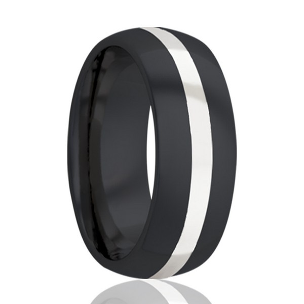 Zirconium ring with silver inlay