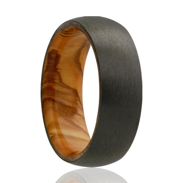 Zirconium ring with olive wood