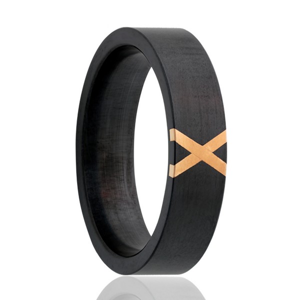 Zirconium ring with yellow gold inlays