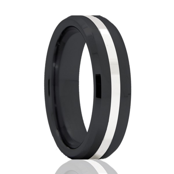 Zirconium ring with silver inlay