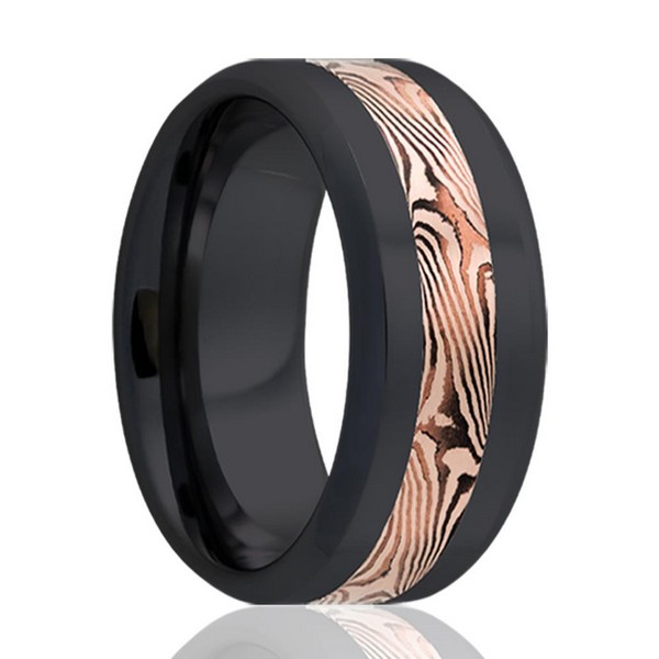 Zirconium ring with rose gold and shakudo mokume gane inlay