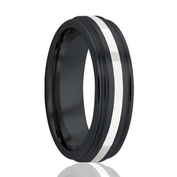 Zirconium ring with silver inlay
